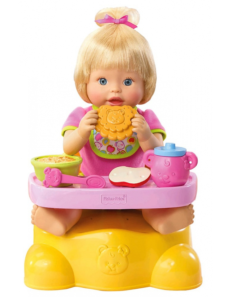 MUÑECA BEBECITA COMIDITAS .1267 FISHER PRICE nseña a comer a esta bebecita que reconoce su comida favorita, distintas posiciones y movimientos y dice más de 60 frases y sonidos de bebé muy reales. Requiere 3 pilas AA.
