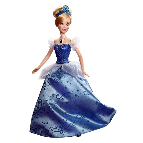 Cenicienta Princesa Luces Mágicas es la princesa Disney que se ilumina como cuando su hada madrina la transforma. Al presionar el colgante, los efectos luminosos se propagan y Cenicienta resplandece mientras suena la música. Esta es la muñeca de Cenicienta que permite recrear la escena de la película que todos tienen grabado en la memoria en la que Cenicienta se ve rodeada de polvos mágicos y su desgastado vestido rosa se transforma en un elegante vestido de gala azul. ¡Cenicienta está preparada para conocer a su príncipe! ¡Para historias de cuento y ensueño!La muñeca no puede tenerse en pie por sí sola.