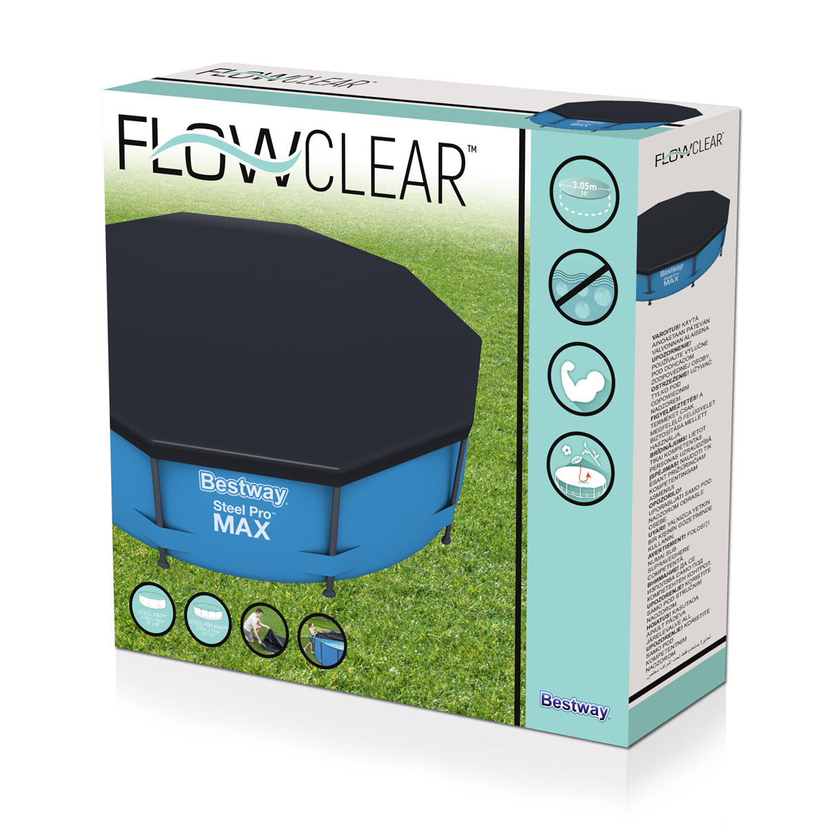 Aleja de tu piscina la suciedad, las hojas y otros residuos con esta cubierta modelo Flowclear de la marca Bestway. Esta cobertura para piscinas desmontables puede prevenir el crecimiento de algas y reducir así el uso de costosos productos químicos cuando no estés usando la piscina.