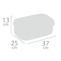 Dimensiones aproximadas de la canastilla: 13 cm de alto x 37 cm de ancho x 25 cm de fondo.