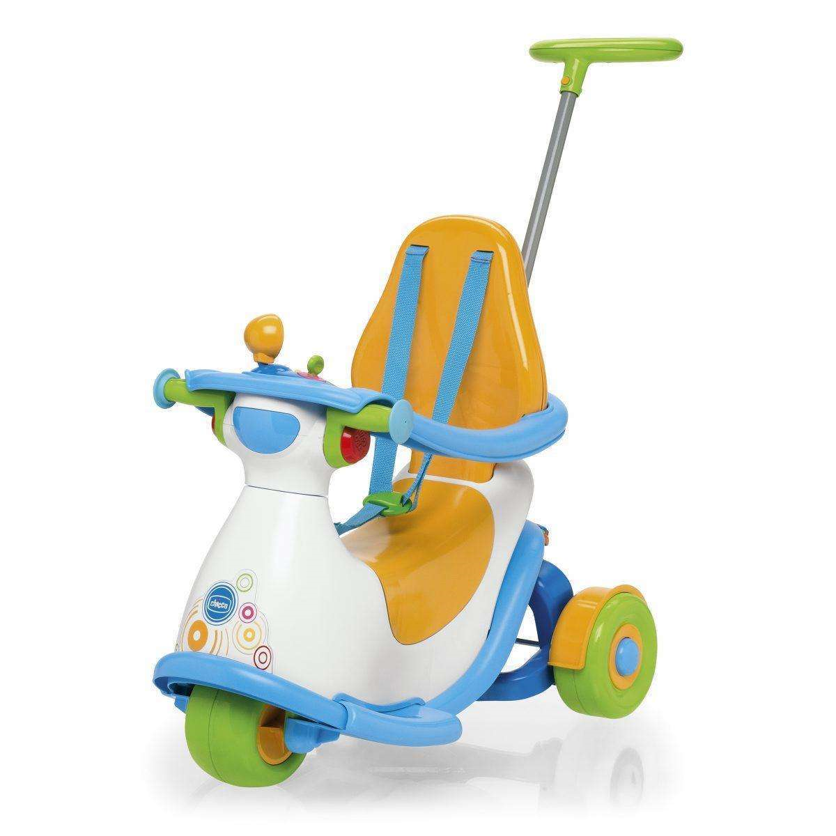 Es un divertido cabalgable que sigue el crecimiento del bebé: la posibilidad de regular el ancho de las ruedas posteriores permite cambiar el asiento del cabalgable. Con 4 modalidades de uso: 1. Empuja y guía : con un práctico manejo y empuñadura ergonómica que permite al adulto empujarlo y guiarlo. Las barras laterales, el cinturón de seguridad de 3 puntos y el apoyapies ofrecen seguridad y confort al bebé. 2. Empuja y camina: el bebé puede apoyarse en el asa posterior y así empezar sus primeros pasos con autonomía. 3. Primer cabalgable : en su primera experiencia, la estabilidad de la moto está garantizada por las ruedas de posición externa. 4.Primer Scooter : después de haber alcanzado la coordinación necesaria y el equilibrio, el niño, puede utilizar Baby Ride con las ruedas traseras muy juntas, para que las carreras sean aún más divertidas. Edad 9m+ Dimensiones : 59 x 33 x 60cm Pilas : 2xAA 1,5V (no incluidas)