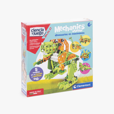 Juego educativo mecanichs junior dinosaurios. Diviértete, monta, juega con estas construcciones de mecanichs. Construye 5 modelos de dinosaurios motorizados, con el kit de construcciones, revive tiempos pasados, teletranspórtate a la prehistoria.