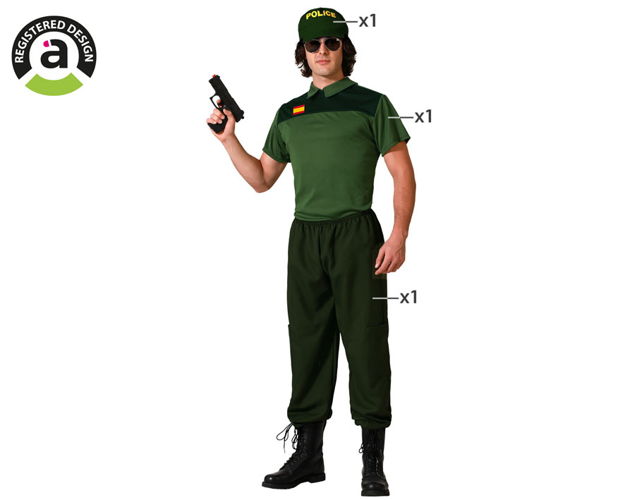 DISFRAZ GUARDIA CIVIL CAMISETA VERDE HOMBRE ADULTO T M-L