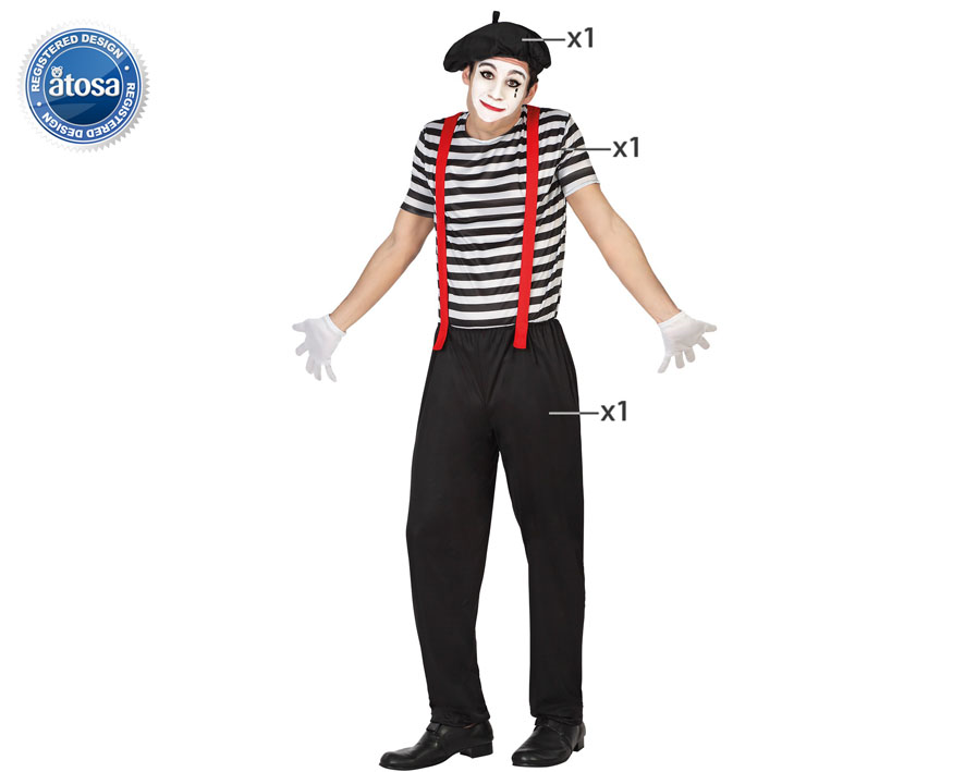 DISFRAZ MIMO HOMBRE ADULTO BLANCO NEGRO M-L