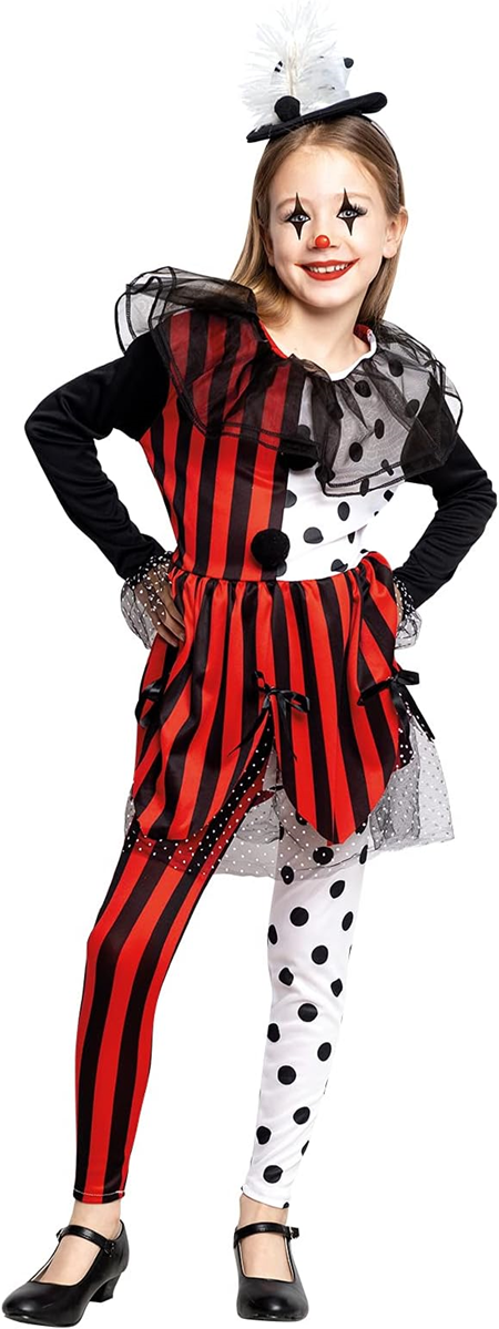 ?El disfraz de payasa de Halloween incluye?vestido, mallas mini sombrero. Material: poliéster. No incluye: calzado.