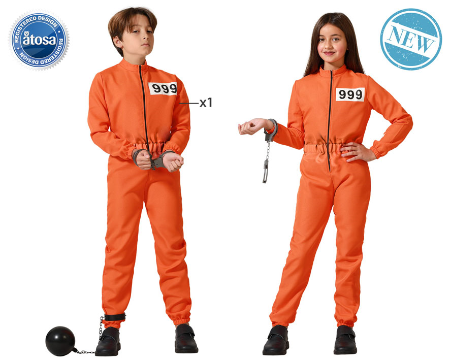 Disfraz unisex talla infantil. Contenido: mono. No incluye: esposas.