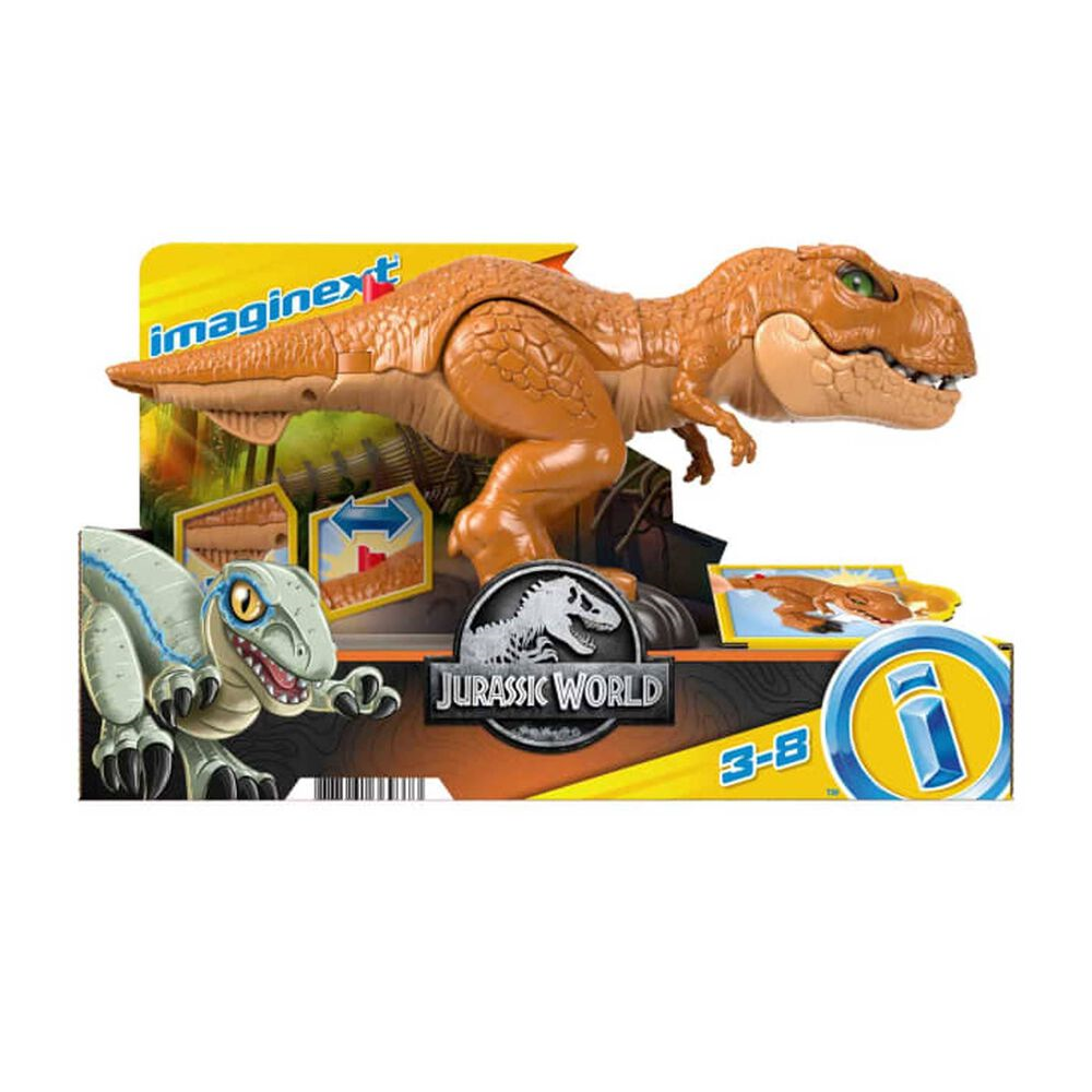 Los jóvenes cuidadores de dinosaurios pueden crear sus propias aventuras llenas de acción con este Tiranosaurio Rex Superacción Jurassic World™ de Imaginext® de Fisher-Price®. El feroz Tiranosaurio Rex está al acecho. Cuando el dinosaurio vea a su presa, los niños pueden deslizar el botón para cambiar sus ojos de tranquilos a enfadados y luego usar la cola y el interruptor para controlar la acción mientras zampa y destroza. Nadie está a salvo con este feroz dinosaurio suelto. Medidas: 36 cm (largo) x 16 cm (alto) x Edad recomendada: De 3 a 8 años. No recomendable para menores de 3 años, ya que contiene piezas pequeñas que podrían provocar asfixia en caso de ser ingeridas por el niño/a.