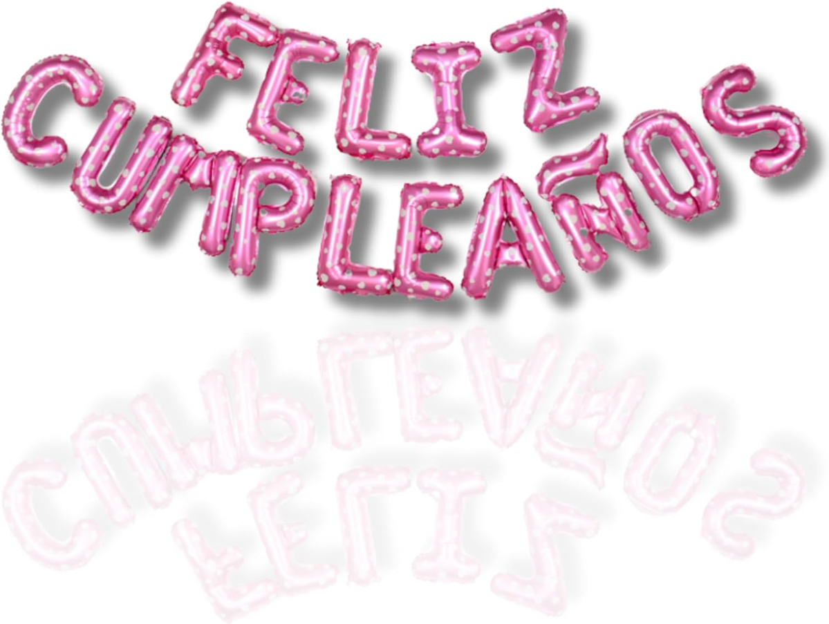 SET FELIZ CUMPLEAÑOS DE GLOBOS FOIL METÁLICOS CON FORMA DE LETRA DE 41CM DE ALTO EN COLOR ROSA