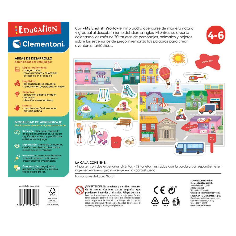 Un mundo entero formado por objetos que se organizan en su entorno adecuado, para aprender muchas palabras nuevas mientras se divierten. Cuenta con tableros grandes que representan las diversas configuraciones, además de muchos mosaicos de palabras para colocar. ADVERTENCIA: No recomendable para menores de 3 años, ya que contiene piezas pequeñas que podrían provocar asfixia en caso de ser ingeridas por el niño/a.