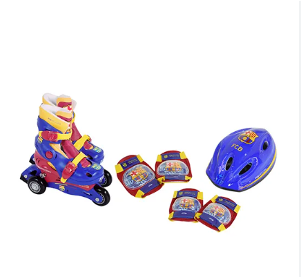 PATIN EN LINEA EXTENSIBLE FC BARCELONA T35 a T38 CASCO Y PROTECCIONES EN MOCHILA