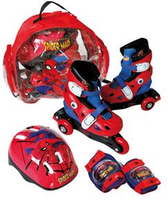 PATIN LINEA SPIDERMAN TALLA 35 A 38 CON CASCO Y PROTECCIONES MOCHILA