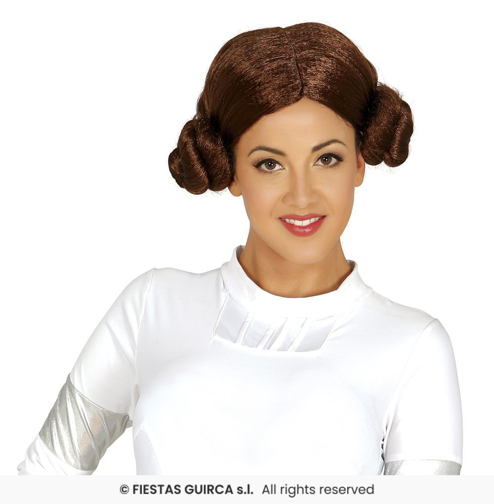 PELUCA CASTAÑA CON MOÑOS EN CAJA