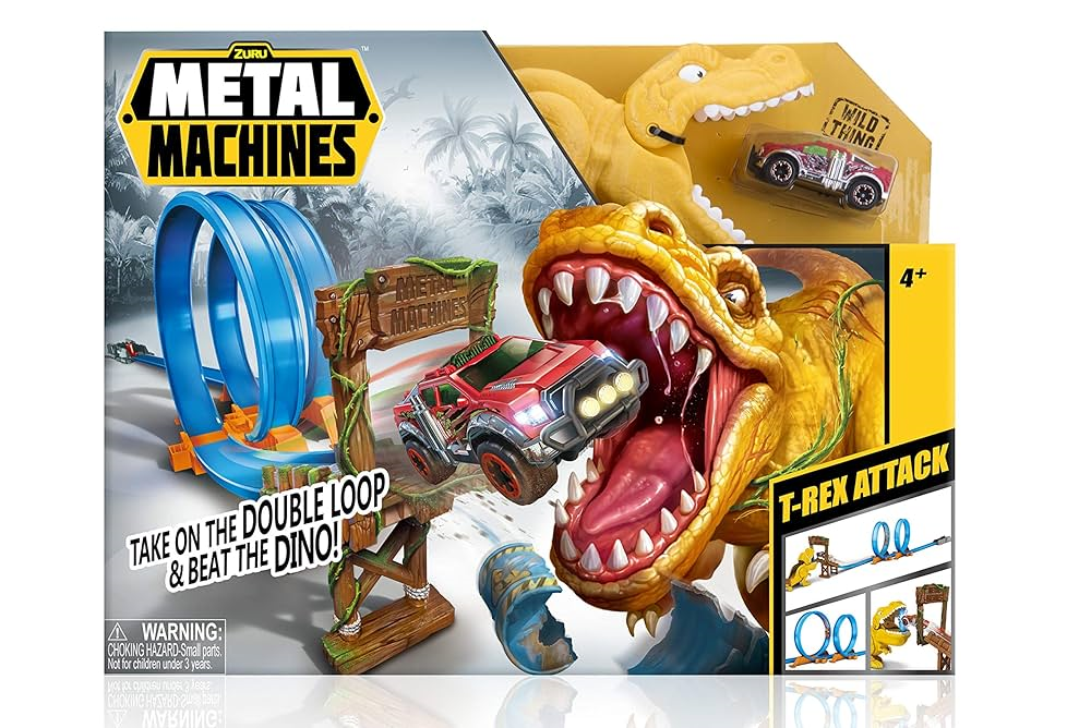 Pista Metal Machines Dinosaurio, con 2 loopings, inlcuye 1 coche 40x30x8cm