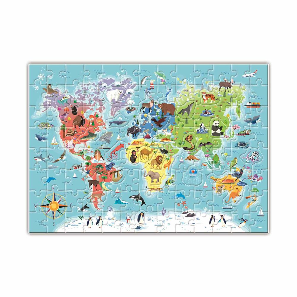 Un rompecabezas y un montón de actividades lúdicas para descubrir los animales del mundo y sus hábitats, aprendiendo sus nombres y categorías. El set contiene un maxi rompecabezas con un mapa del mundo con las principales características físicas y formas de los animales e imágenes con la vegetación típica de cada hábitat. El conjunto también incluye fichas informativas para la clasificación de los animales. Los niños pueden disfrutar completando el rompecabezas y encajando los animales con forma en los hábitats correctos. También incluye juegos de mesa, retos, bingo y ´encuéntralo´, para agudizar la visión, desarrollar habilidades lógicas y entrenar reflejos. Edad recomendada: De 6 a 10 años. ADVERTENCIA: No recomendable para menores de 3 años, ya que contiene piezas pequeñas que podrían provocar asfixia en caso de ser ingeridas por el niño/a.