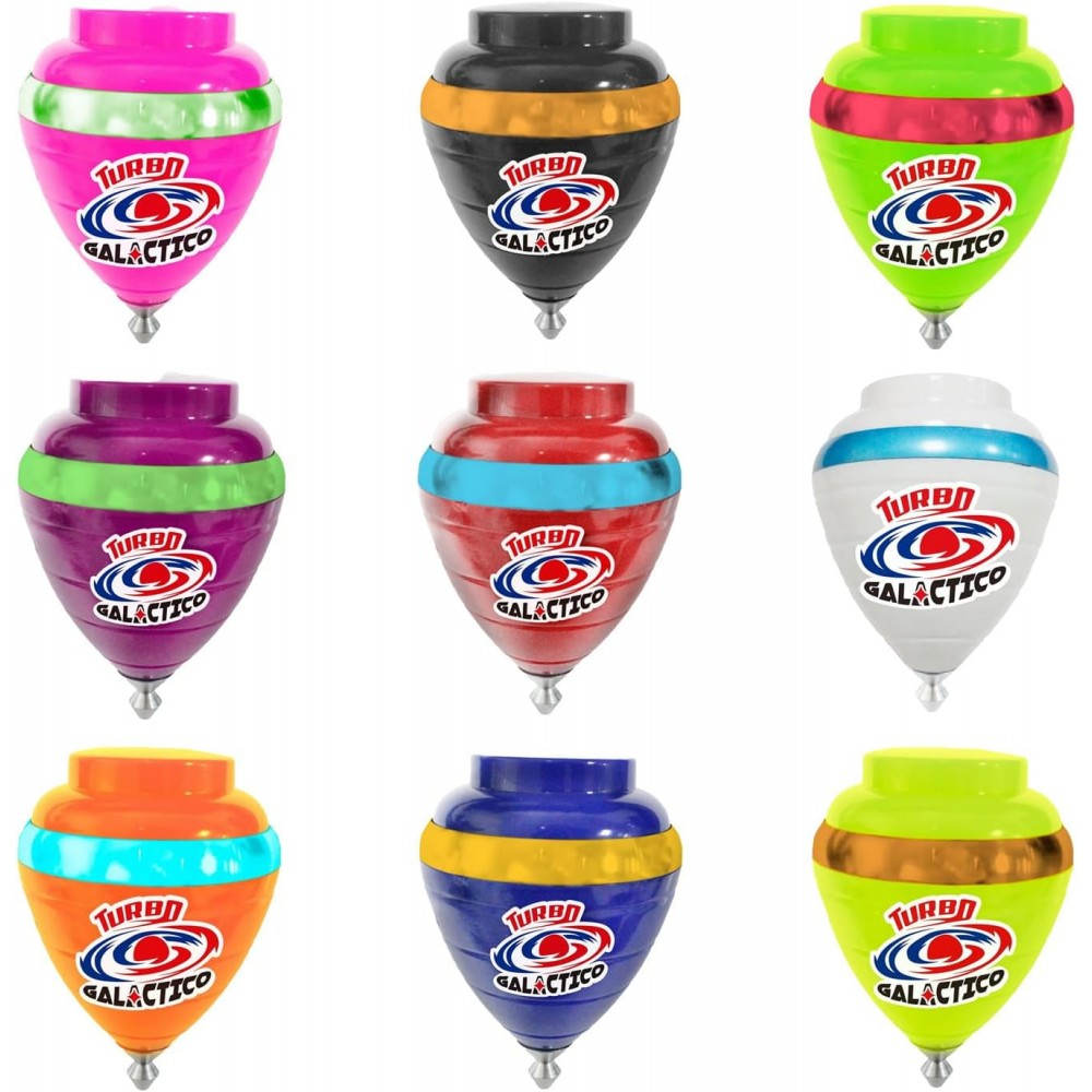 ¡Descubre la nueva generación de trompos! El Trompo Turbo Galáctico de Trompos Cometa combina velocidad, precisión y estilo con su punta giratoria de alto rendimiento y su anillo metálico de color que mejora la estabilidad y el equilibrio durante el giro.